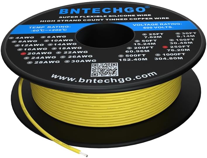 Introducing the BNTECHGO 20 Gauge Silicone Wire Spool, a must-have for all your electrical projects! This high-quality wire features a generous 250 feet of yellow, flexible 20 AWG stranded tinned copper wire, perfect for a wide range of applications. Constructed with premium materials, this silicone wire is durable, reliable, and easy to work with. The…